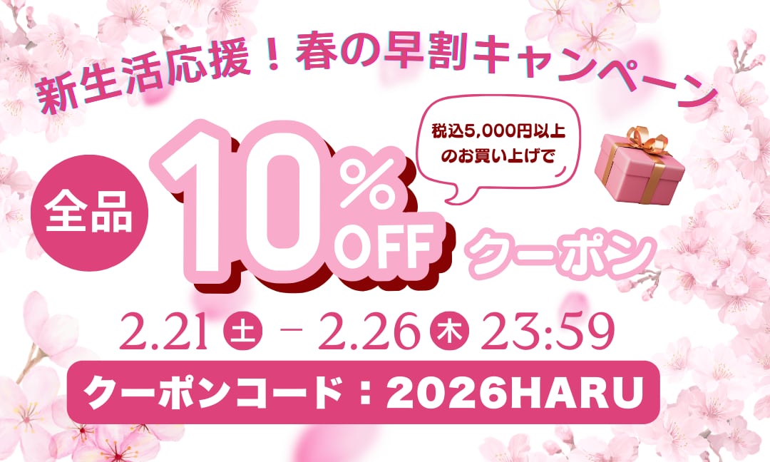 - 新生活応援!税込5,000円以上で全品10%OFFクーポン配布中!2/26まで!