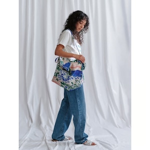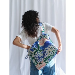 しなやかなコットン生地に手描きのタッチを活かしたテキスタイルをプリントし、まるで絵を持ち歩くような感覚をお楽しみいただけます。