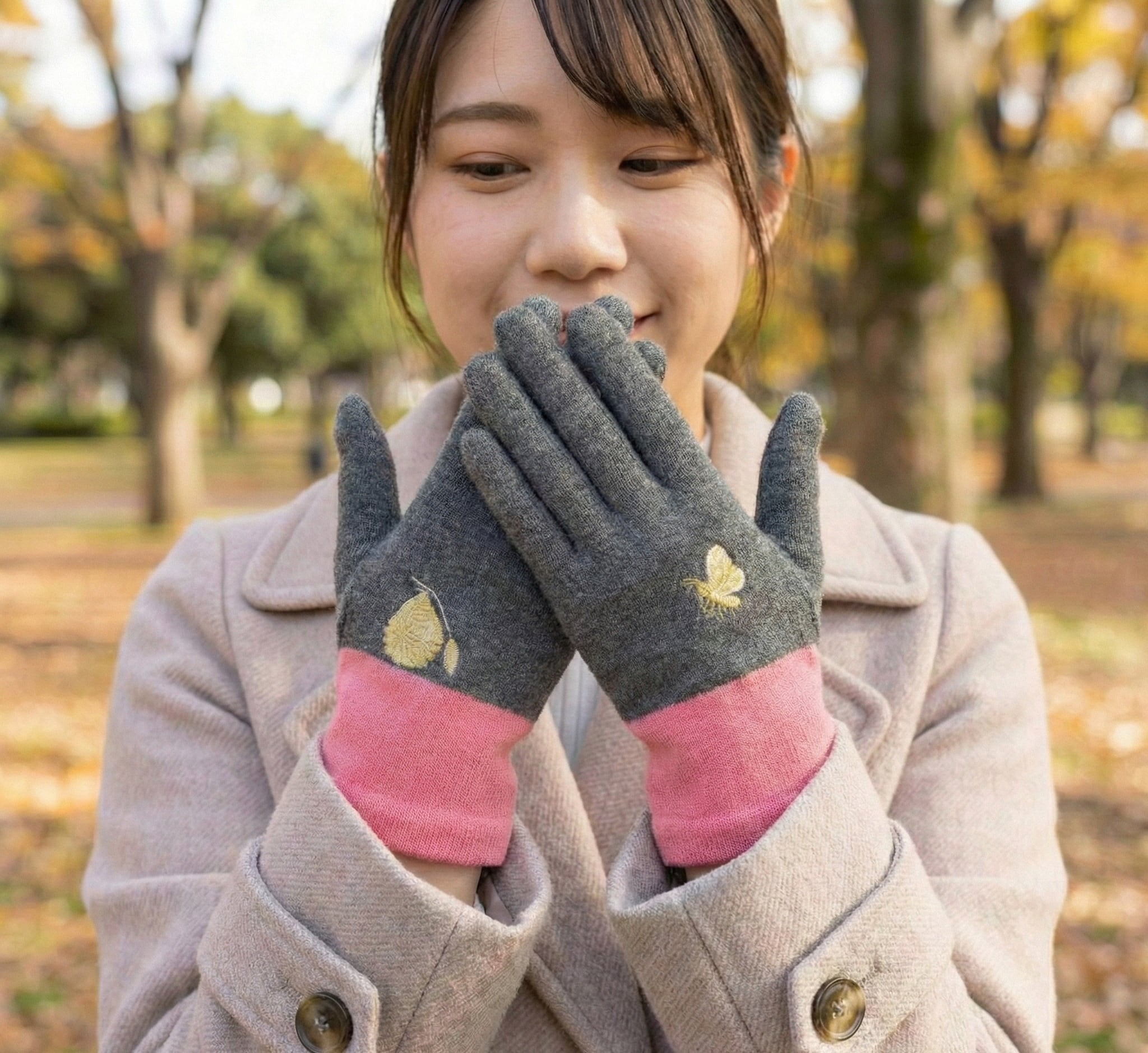 両手の甲には、ミニタオル「FAVORITE」と同じ柄のワンポイント刺繍をあしらい、シリーズならではの世界観をそのままお楽しみいただけます。