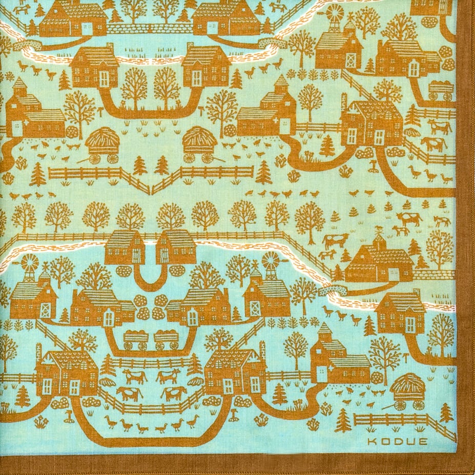 すごろくゲームのような細かな街のデザインが、眺めているだけで楽しいハンカチ。