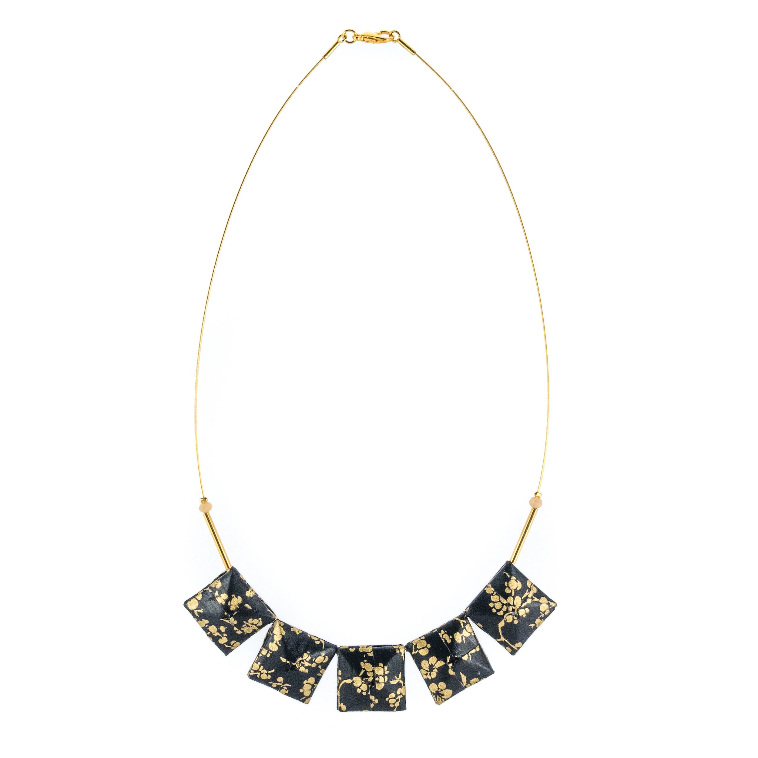 【決算処分セール】Mayumi Origami スクエアネックレス / ブラック×桜 日本製和紙使用 24Kコーティング SQU975