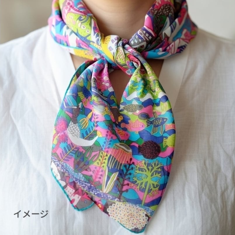 色彩豊かな、まるで一枚の絵画のようなハンカチ。